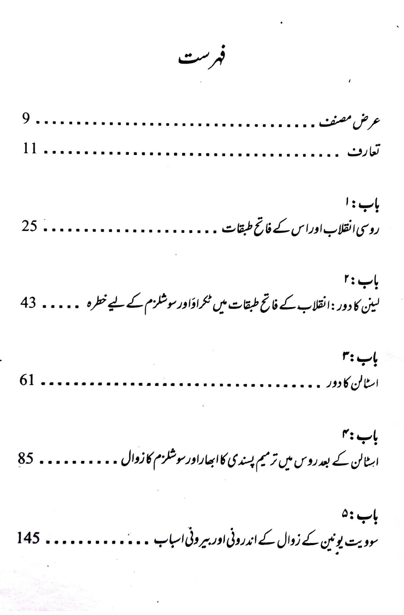 حادثہ لازمی تو نہیں ہوتا لیکن اس کے لازمی ہونے کے بہت سارے اسباب موجود ہوتے ہیں۔ جدلیات کی سائنس بھی ان اسباب کی تصدیق کرتی ہے۔ اس طرح 1991 میں سوویت یونین ٹوٹ گیا تو اس کے بھی بہت سارے اسباب تھے۔ وہ سیاسی بھی تھے تو معاشی بھی تھے ، وہ فکری بھی تھے تو عملی بھی تھے۔ قطع نظر اس کے سوویت یونین کے انہدام کی وجہ سے آج تک لوگ حیران اور پریشان ہیں۔ امریکی دانشور فو کو یاما ( جنم : 1952 ) نے ششدر ہو کر یہ تک کہہ دیا کہ اب تاریخ کا خاتمہ ہو چکا ہے اور سوویت یونین کے زوال کے بعد اب دنیا میں کوئی بھی تضاد باقی نہیں رہا۔ بہر کیف، دنیا میں بہت سارے لوگ آج تک اس بات کو سمجھ نہ سکے ہیں کہ اکتوبر 1917 میں جو رو__س میں مزدوروں کا انقلاب آیا، جس نے تاریخ میں پہلی مرتبہ مزدوروں اور کسانوں کو اقتدار و اختیار کا مالک بنایا، جس نے طبقاتی نظام اور طبقاتی تفریق کو ختم کیا، جس نے ہر قسم کے ظلم اور استحصال کا خاتمہ کیا، جس نے انسانی تاریخ میں اجتماعیت کا انوکھا تجربا کیا، جس نے سرمائیدار دنیا کو اچھے میں ڈال دیا، جس کی وجہ سے ایشیا، افریقہ ، اور لاطینی__امریکہ کے ایک سو سے زائد ممالک میں انقلاب آئے، جس نے مظلوم اقوام اور طبقات کا استحصال کرنے والے جاگیر داری۔ سرمایہ داری نظام کو مفلوج کر کے عالمی انقلاب کی تحریک شروع کردی، جس نے دوسری جنگ عظیم میں فتح حاصل کر کے دنیا میں محنت کش طبقے کا اخلاقی مورال بلند کیا، جس نے نو آبادیاتی اقوام کی مدد کی، ان کو آزادی دلائی اور برطانوی سامراج کی کمر توڑ دی، جس نے ہندوستان اور پاکستان کے آزادی کا راستہ ہموار کیا وہ ہی انقلاب پچھتر سالوں کے سفر کے بعد اگست 1991 میں کیوں اپنے خاتمے سے دوچار ہوا؟ سوال یہ ہے کہ سوویت یونین میں آخر سوشلزم کا زوال کیوں آیا؟ کیا یہ سوشلزم کی ناکامی تھی یا یہ صرف سوویت یونین کا زوال تھا ؟ اگر 1991 میں سوویت یونین کا زوال آیا تو کیا اس سے یہ ثابت ہوتا ہے کہ سوشلزم بطور نظریہ ناکام ہوا یا یہ ناکامی اس نظام کی تھی، جس کو سوویت یونین میں اسٹالن (1878-1953) کی وفات کے بعد روسی کمیونسٹ پارٹی نے قائم کیا تھا؟ ان سولات پر اس کتاب میں تفصیل کے ساتھ مفصل بحث کی گئی ہے۔ اس کتاب کو چھ ابواب میں تقسیم کیا گیا ہے۔